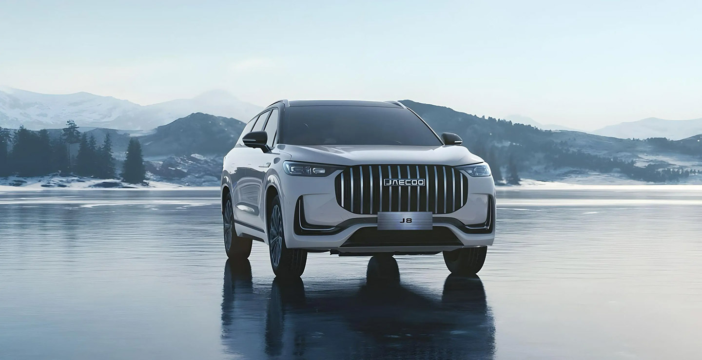 The J8 exterior embodies bold simplicity with crisp, powerful lines and a golden-ratio silhouette. A prominent waistline draws attention to dynamic proportions, reflecting a fresh modernist aesthetic.